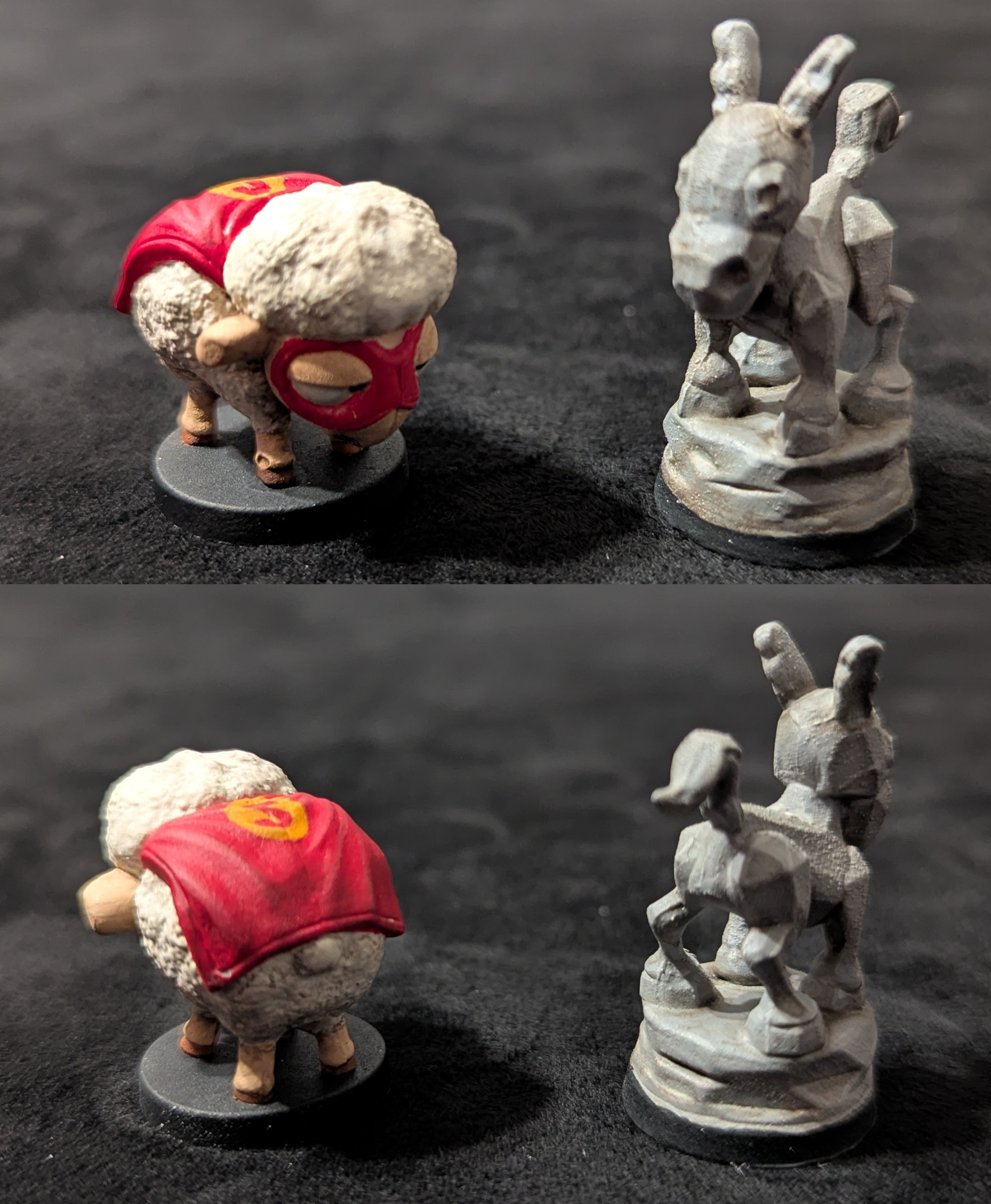 When we paint miniatures, we try to mimic the artwork in areas where we can and capture the feel of the figure in areas without clear source material. These images can provide an additional reference to work from when painting your own miniatures. We also typically replace the bases with clear acrylic bases because we think it looks better. We purchase round bases in various sizes from Litko.